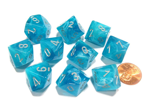 $9.90Original price $9.90 - Original price $9.90Original price$9.90 - $9.90Current price $9.90Chessex Set of 10 Cirrus D10 Dice - Aqua with Silver Numbers