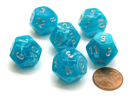 $6.79Original price $6.79 - Original price $6.79Original price$6.79 - $6.79Current price $6.79Chessex Cirrus 18mm 12 Sided D12 Dice, 6 Pieces - Aqua with Silver