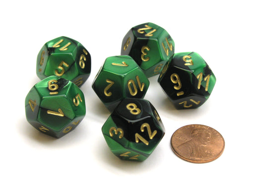 $9.99Original price $9.99 - Original price $9.99Original price$9.99 - $9.99Current price $9.99Chessex Gemini 18mm 12 Sided D12 Dice, 6 Pieces - Black-Green with Gold