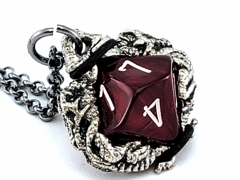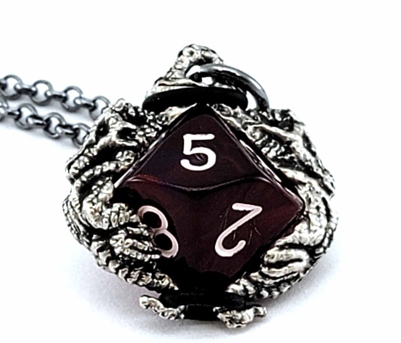 Dice Pendant Necklace 'Dragons' with Gunmetal Gray Finish - Holds a D10