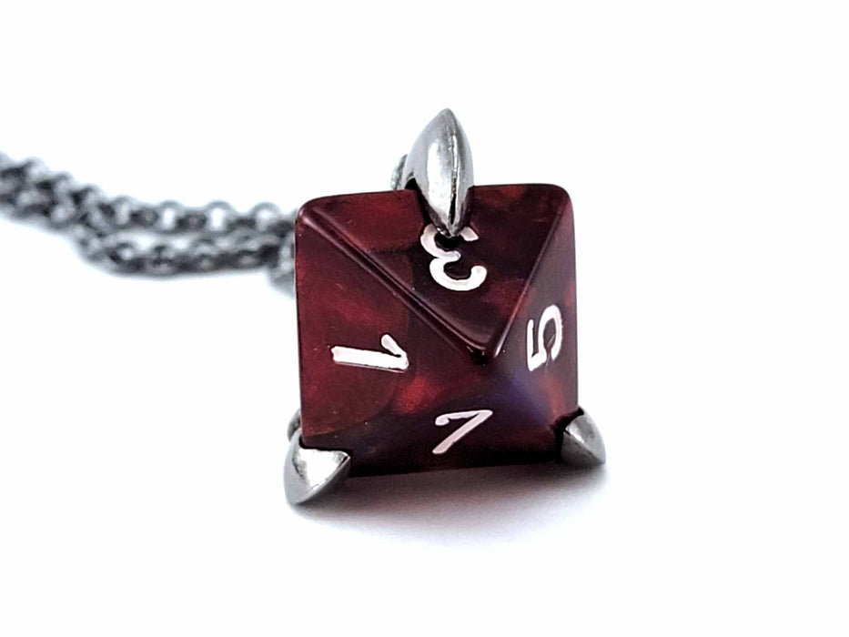 - Purchase includes 1 dice pendant necklace for 8-sided dice, and one d8 standard sized die.
