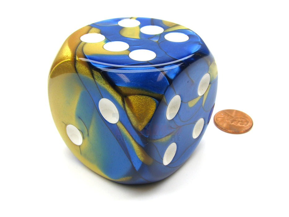 Gemini 50mm Huge Large D6 Chessex Dice, 1 Piece - Blue-Gold with White Pips
