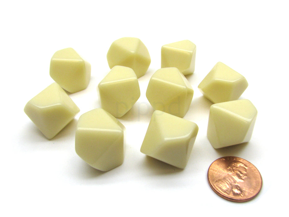 Opaque Polyhedral Bag Of 10 Blank Ivory 16mm D10 Chessex Dice