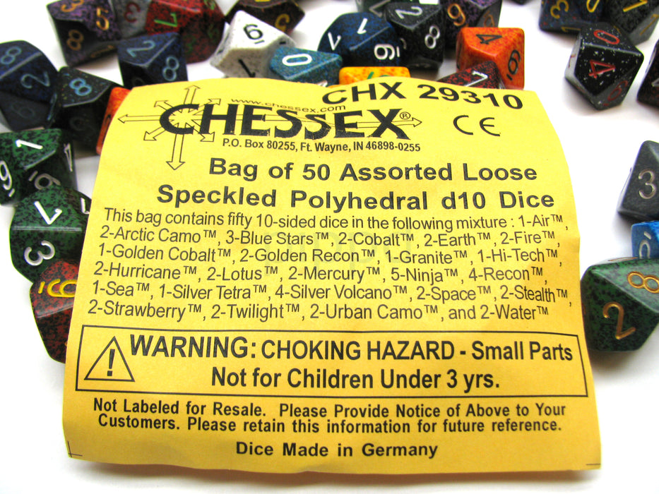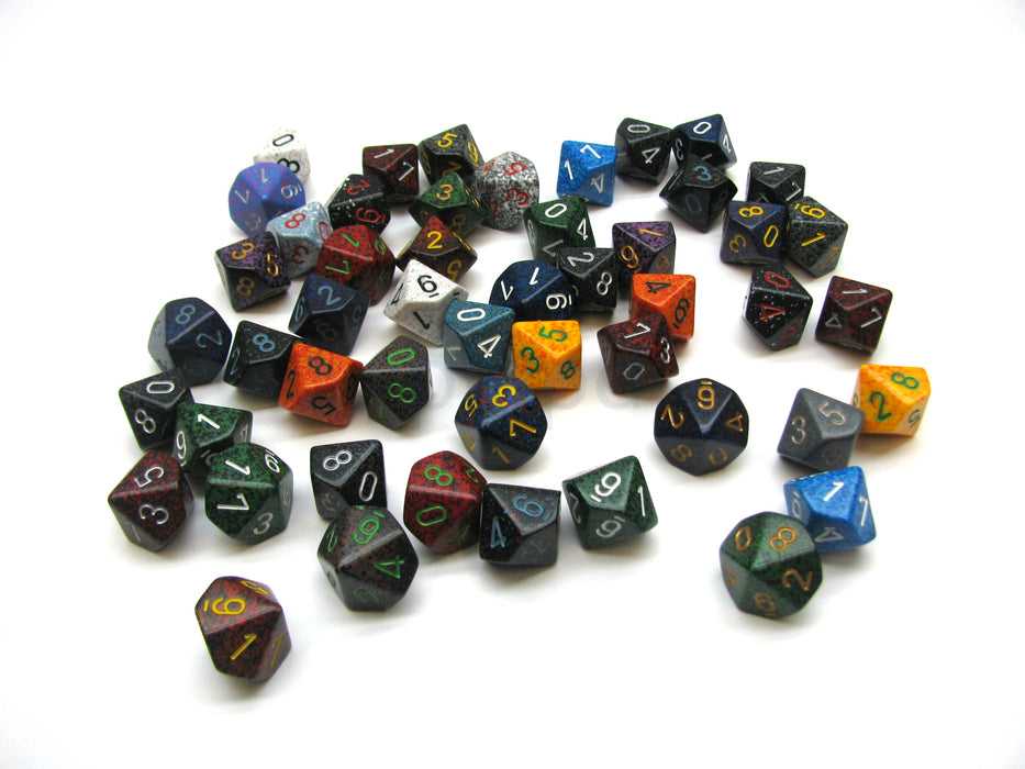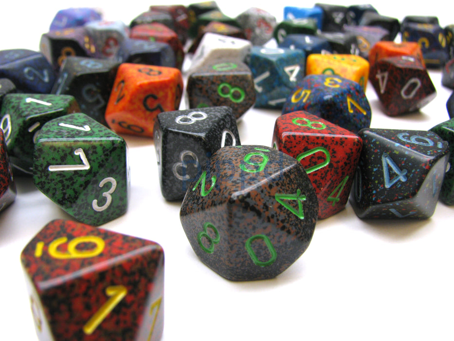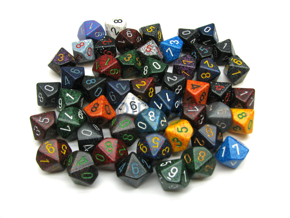 Bag Of 50 Assorted Loose Speckled Polyhedral 16mm D10 Chessex Dice