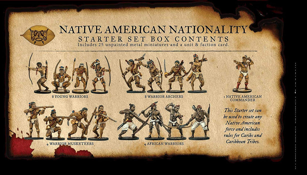 • This 25-piece Starter Set can be used to create any Native American force and includes rules for Caribs and Caribbean Tribes
