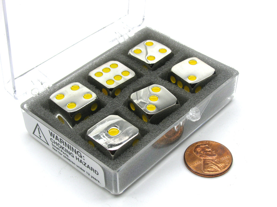 Box of 6 Zinc Metal Alloy D6 15mm Heavy Dice - Yellow Pips