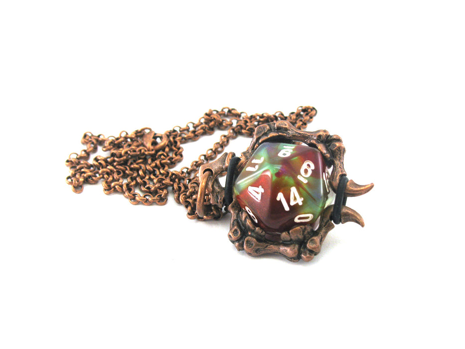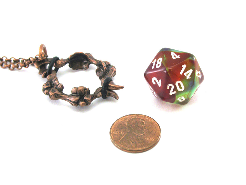 Jewelry Dice Pendant Bone Necklace with Old Copper Finish- Holds a D20 Die