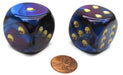Gemini 30mm Large D6 Chessex Dice, 2 Pieces - Blue-Purple with Gold Pips