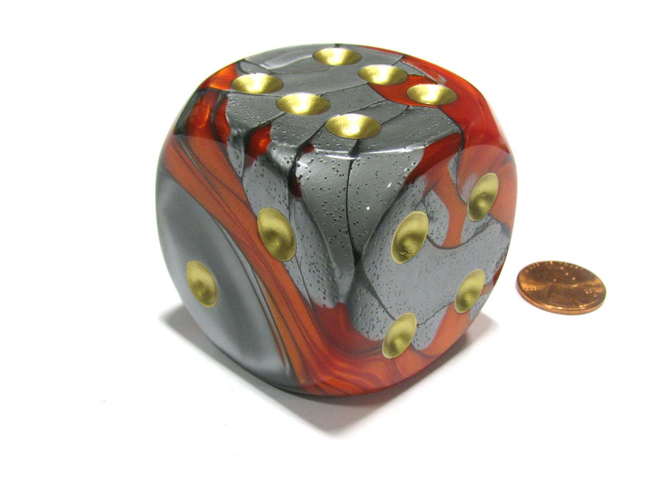 Gemini 50mm Huge Large D6 Chessex Dice, 1 Piece - Orange-Steel with Gold Pips