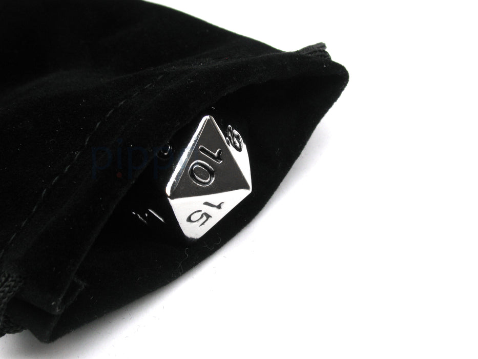 Large 22mm Zinc Metal Alloy Countdown D20 Dice w Black Bag, 1 Pc - Black Numbers