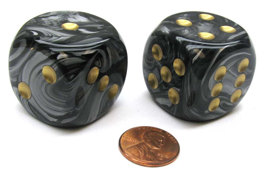 Lustrous 30mm Large D6 Chessex Dice, 2 Pieces - Black with Gold Pips