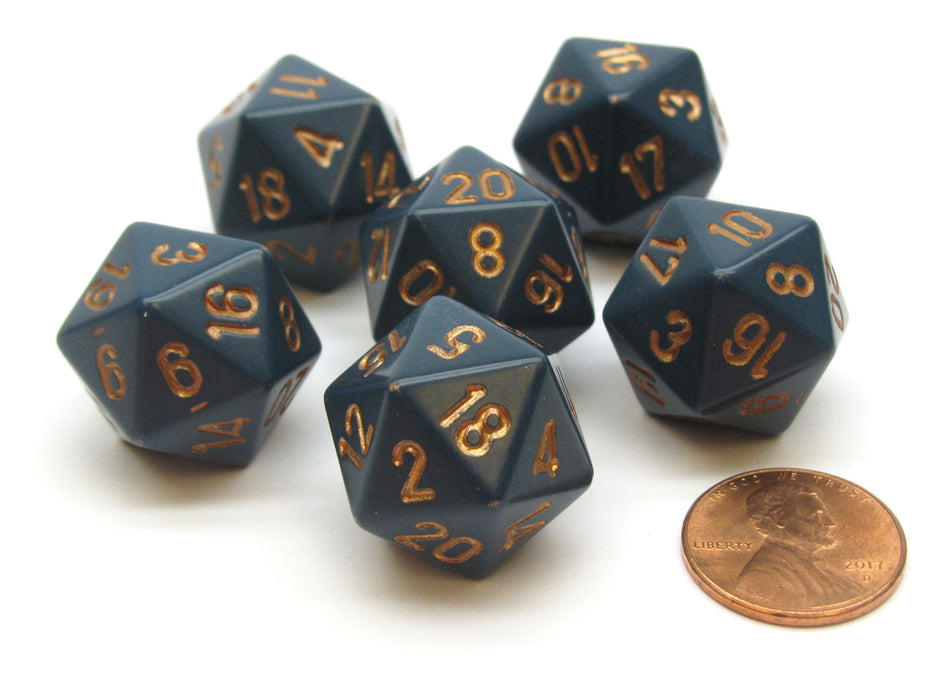Opaque 20mm 20 Sided D20 Chessex Dice, 6 Pieces - Dusty Blue with Copper Numbers