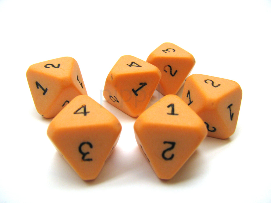 Opaque Orange with Black Chessex 8-Sided D4 Die Numbered 1-4 Twice, 6 Dice