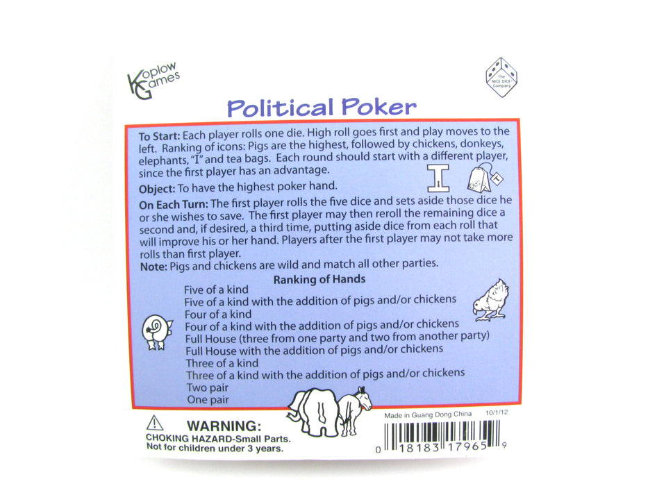 Political Poker "The Great American Crap Shoot" Dice Game 5 Piece Set