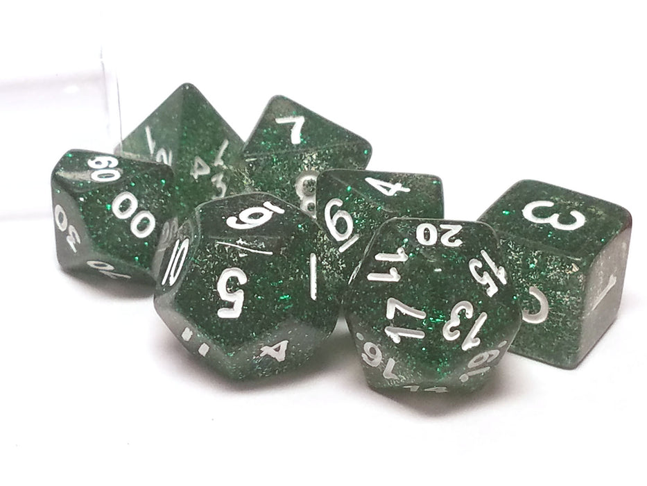 Polyhedral 7-Die Glitter Dice Set - Green