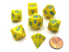 Polyhedral 7-Die Vortex Chessex Dice Set - Yellow with Blue Numbers
