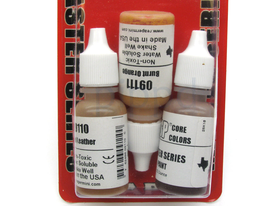- Includes Paints: 09109 Ruddy Leather, 09110 Oiled Leather, 09111 Burnt Orange
