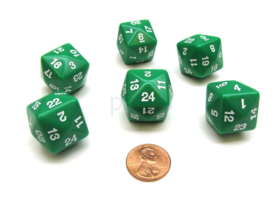 Set of 6 D24 Opaque 24mm 24-Sided Gaming Dice - Green