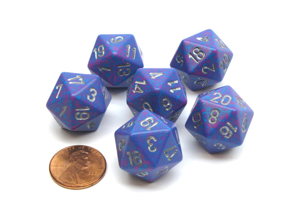Speckled 20 Sided D20 Chessex Dice, 6 Pieces - Silver Tetra