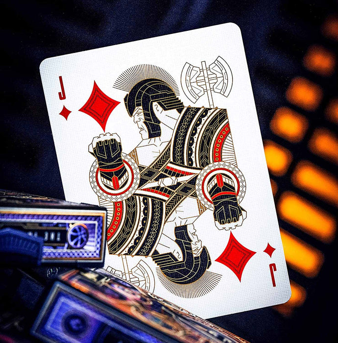 The outer packaging is simply jaw-dropping. The iridescent, cosmic foil shimmers and alters its color at every angle. Complete with gold foil accents and precise embossing, the ultra-lux outer packaging is truly representative of the legendary Infinity Saga. AVENGERS: Infinity Saga playing cards feature completely custom artwork in every aspect of the design, with the Aces, Jokers, box design, and court cards inspired directly by fan-favorite characters quintessential to the Marvel Cinematic Universe. Inside the box, even the Aces feature callbacks to characters like Doctor Strange, Vision, Winter Soldier, and Gamora. And this wouldn't be an Infinity Saga deck without a little bit of mischief and balance: Loki and Thanos make their presence known on each Joker!