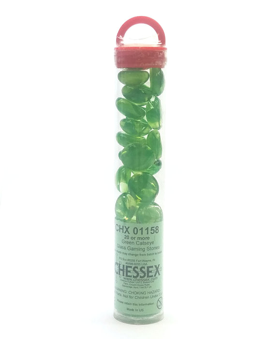 Tube of 20-25 Glass Gaming Stones Board Game Pieces - Green Catseye