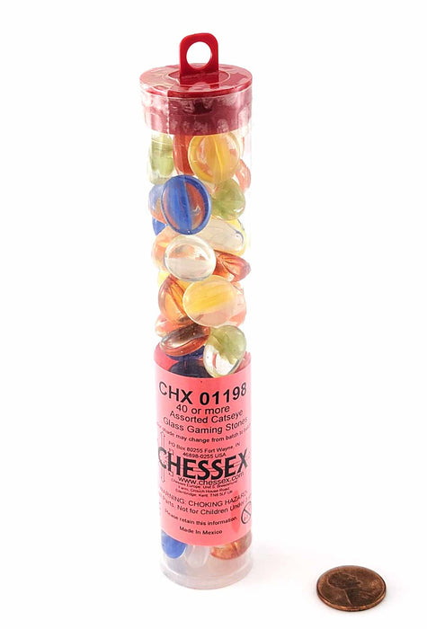 Tube of 40 Glass Gaming Stones (12-15mm), Assorted Colors - Catseye