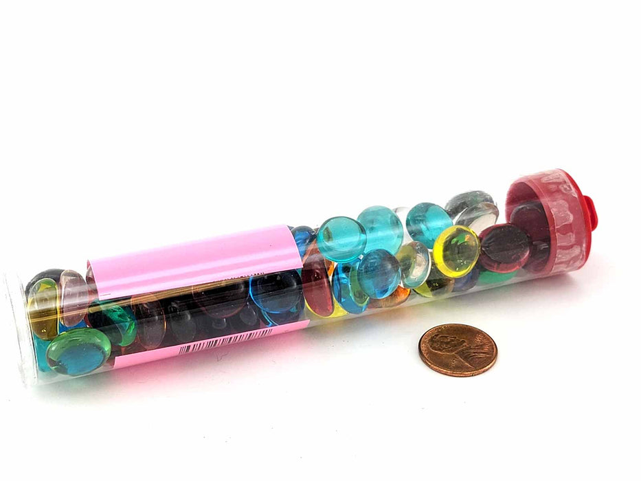Tube of 40 Glass Gaming Stones (12-15mm), Assorted Colors - Translucent