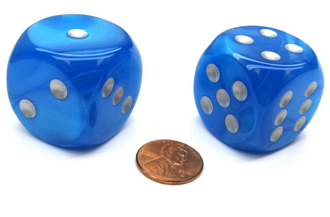 Velvet 30mm Large D6 Chessex Dice, 2 Pieces - Bright Blue with Silver Pips